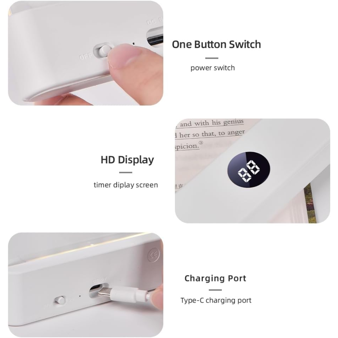 La luz LED de lectura cuenta con un diseño compacto y elegante, ideal para usar en libros, mesas de noche o escritorios sin ocupar mucho espacio.